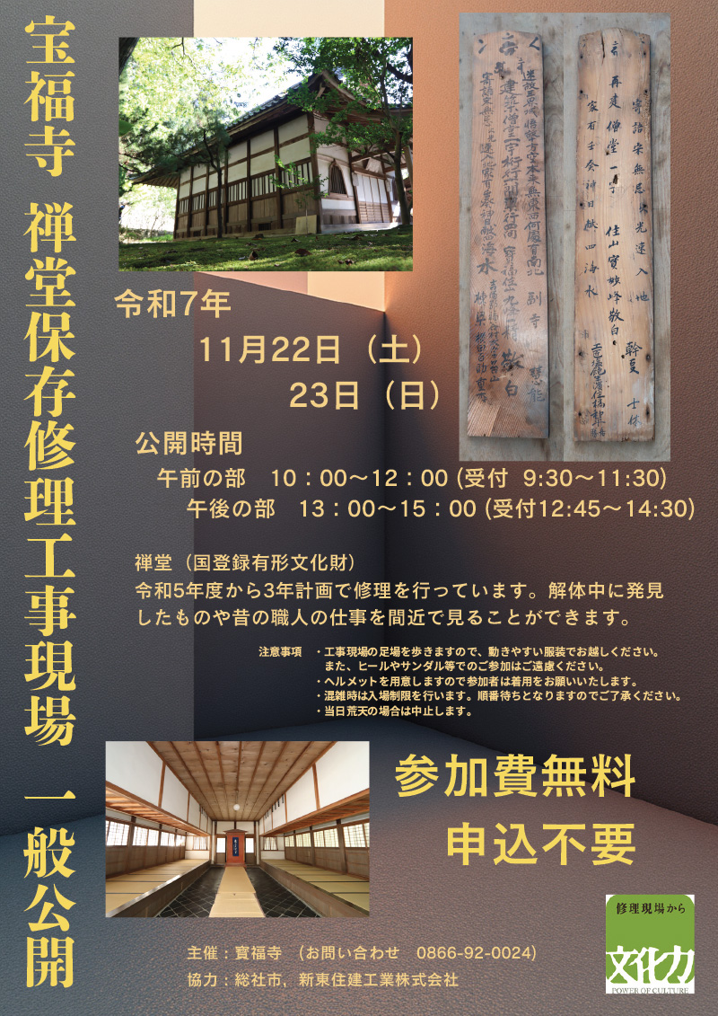 また、禅堂屋根保存修理見学会もありますので是非の御参加お待ち申し上げます。